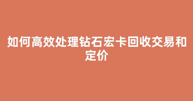 如何高效处理钻石宏卡回收交易和定价