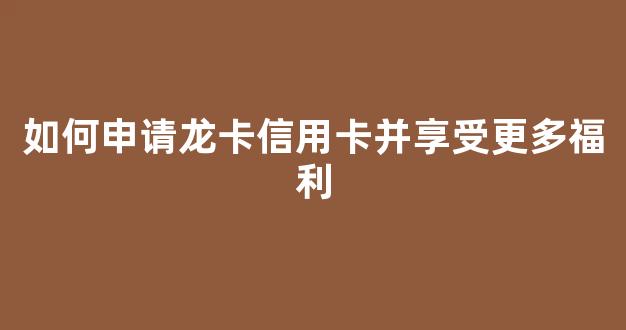 如何申请龙卡信用卡并享受更多福利
