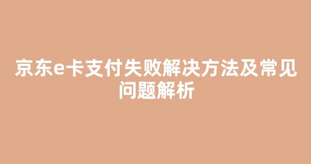 京东e卡作为一种便捷的支付方式,广泛应用于京东购物平台,能够为用户提供更加灵活和安全的支付体验。然而,在使用过程中,部分用户可能会遇到支付失败的情况,影响购物体验。本文将全面解析京东e卡支付失败的常见原因,并提供相应的解决方法。通过本文的详细讲解,用户将能够更轻松地解决支付难题,提升购物体验。