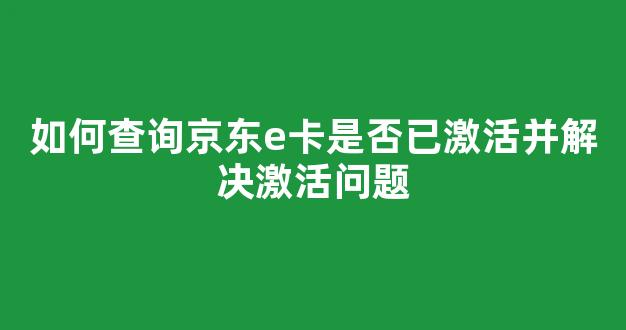 京东e卡作为京东推出的一种购物优惠方式,广受消费者的喜爱。通过京东e卡,用户可以在京东商城内进行购物或享受各种优惠。很多用户在收到京东e卡后,会有一个共同的问题:如何查询京东e卡是否已经激活?如果没有激活,又该如何解决激活问题?本文将为大家详细解答这些疑问,并提供一些解决方案,帮助用户更好地使用京东e卡。