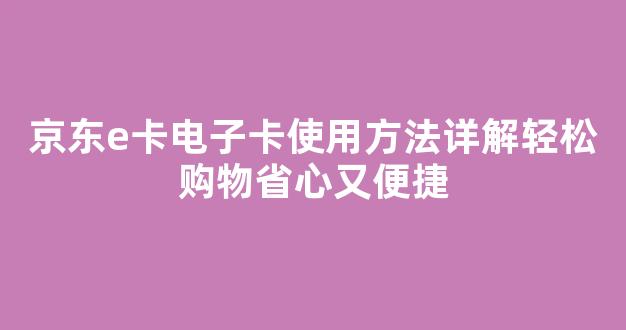 京东e卡电子卡使用方法详解,轻松购物省心又便捷