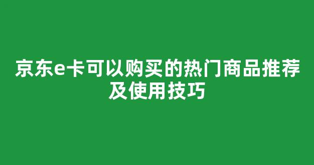 京东e卡作为一种便捷的支付工具,广泛应用于京东平台上购物,因其操作简便、赠送方便,已经成为许多消费者的首选支付方式。通过京东e卡,用户可以在平台上购买各种商品,从日用商品到电子产品,应有尽有。本文将为您详细介绍京东e卡可以购买的热门商品,并分享一些实用的使用技巧,帮助您充分发挥京东e卡的优势,提高购物体验。