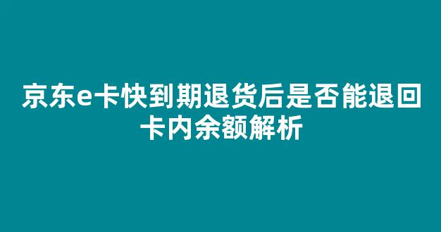 如果你在退货时使用了京东e卡支付,退回的金额一般会返还至你的京东e卡中。退货金额会在审核通过后,按照一定时间内返还到e卡账户。这意味着,如果商品退货,且退货金额符合退款要求,你的卡内余额将会增加,并可以继续用于购物。