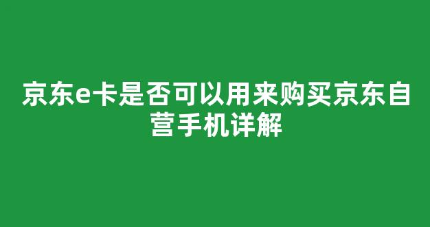 京东自营手机通常指的是由京东直接销售的手机,这类商品在京东平台上有着较高的信誉保障和售后服务。而关于京东e卡是否能够用来购买这些手机,答案是肯定的。京东e卡是可以用来购买京东自营手机的,只要商品页面显示支持京东e卡支付,消费者便可通过京东e卡进行支付。