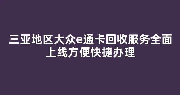 三亚地区大众e通卡回收服务全面上线 方便快捷办理