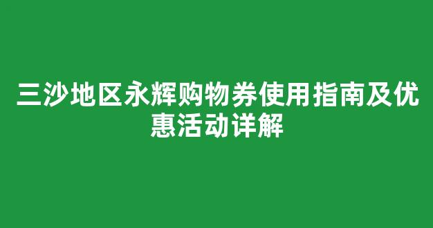 三沙地区永辉购物券使用指南及优惠活动详解