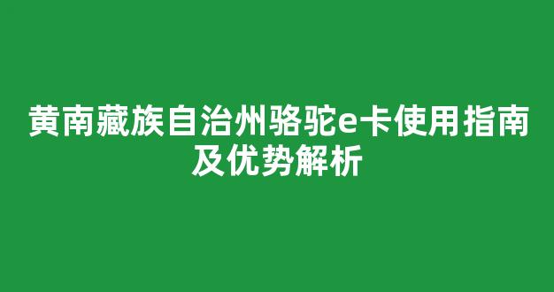 黄南藏族自治州骆驼e卡使用指南及优势解析
