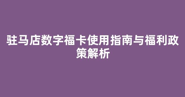 随着数字化时代的到来,许多城市都推出了数字福卡,这一举措不仅提升了市民的便利性,也为大家提供了多种福利。驻马店市也不例外,推出了数字福卡,市民可以通过这张福卡享受各种优惠和福利。本文将对驻马店数字福卡的使用指南和福利政策进行详细解析,帮助市民更好地了解如何使用福卡,获取更多的福利。