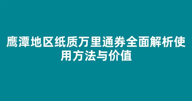 鹰潭地区纸质万里通券全面解析使用方法与价值