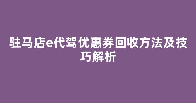 驻马店e代驾优惠券回收方法及技巧解析