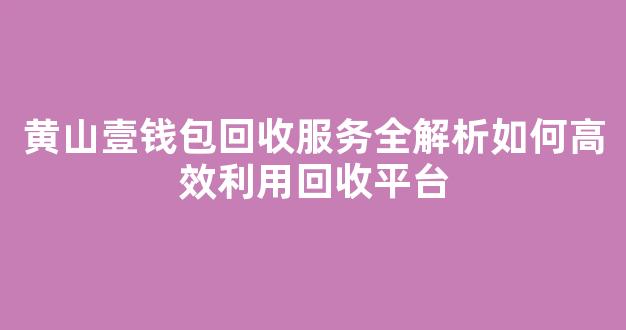 黄山壹钱包回收服务全解析如何高效利用回收平台