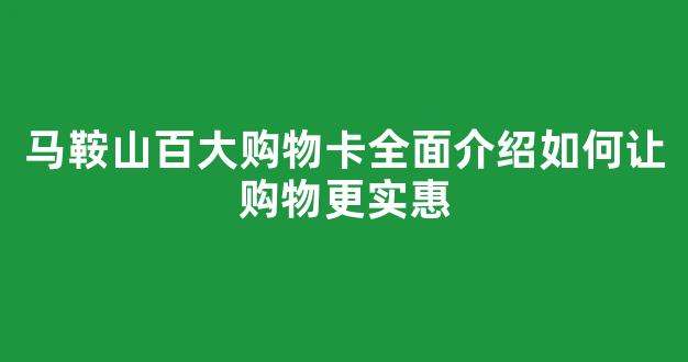 马鞍山百大购物卡全面介绍如何让购物更实惠
