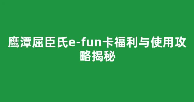 鹰潭屈臣氏e-fun卡福利与使用攻略揭秘