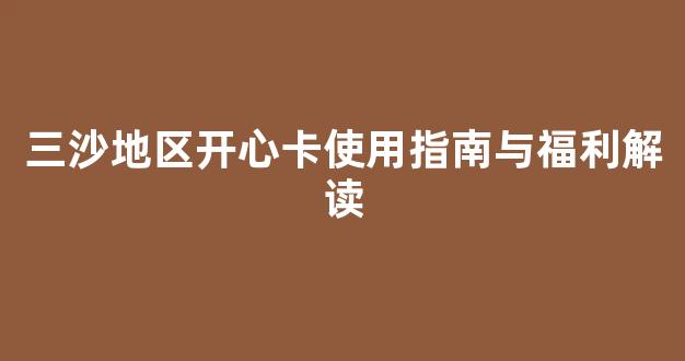 三沙地区开心卡使用指南与福利解读