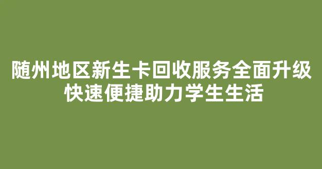 随着随州地区新生人数的逐年增加,学生们的校园生活也变得越来越便捷。为了更好地服务广大学生群体,随州地区的大学新生卡回收服务也得到了全面升级。从回收方式到回收平台的选择,新的服务模式使学生的生活更加轻松和高效。本文将为大家介绍这一全新的回收服务,帮助大家了解如何快速回收旧的新生卡,并确保回收过程安全、便捷、可靠。