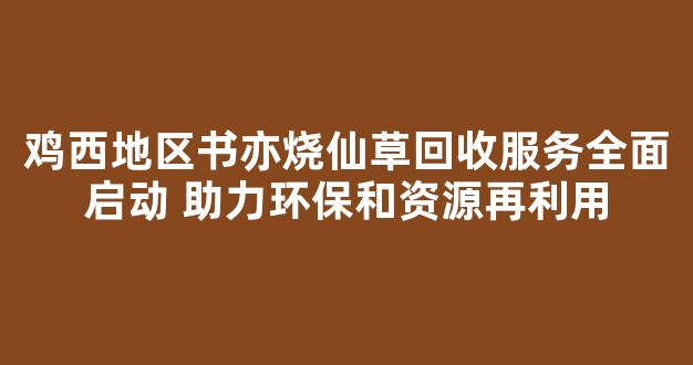 鸡西地区书亦烧仙草回收服务全面启动 助力环保和资源再利用