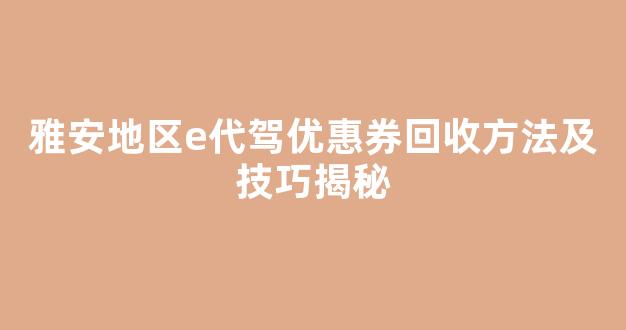 雅安地区e代驾优惠券回收方法及技巧揭秘