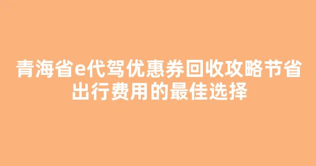 青海省e代驾优惠券回收攻略节省出行费用的最佳选择