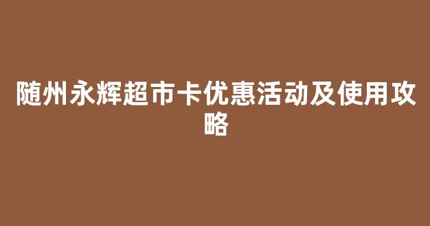 随着永辉超市在全国各地的扩展,越来越多的消费者开始关注超市卡的优惠活动。特别是在随州,永辉超市卡已经成为了许多人购物时的首选。本文将详细介绍随州永辉超市卡的优惠活动和使用攻略,帮助大家充分利用这些优惠,享受更多的购物福利。