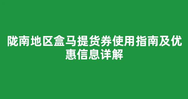 在陇南地区,盒马的提货券已经成为许多消费者日常购物的一部分。这些提货券不仅能帮助大家节省购物费用,还提供了方便快捷的提货方式。本文将为大家介绍盒马提货券的使用方法,优惠信息,以及如何最大化利用这些优惠来提高购物体验。