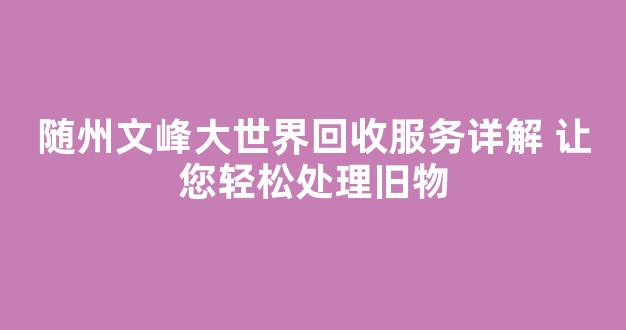 随州文峰大世界回收服务详解 让您轻松处理旧物