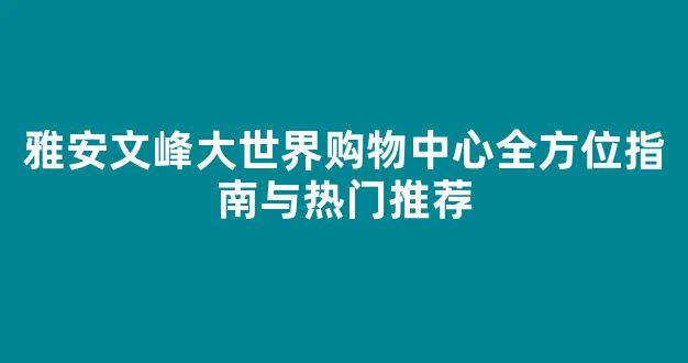 雅安文峰大世界购物中心全方位指南与热门推荐