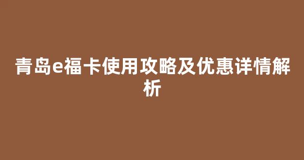 青岛e福卡是一种电子卡,通过该卡,青岛市民可以享受多种便利服务和优惠。无论是交通出行还是日常消费,e福卡都为市民提供了更加便捷和实惠的选择。本文将详细介绍青岛e福卡的使用方法、如何获取、卡内余额管理、使用优惠以及如何进行回收。帮助大家全面了解青岛e福卡,避免在使用过程中出现不必要的困扰。