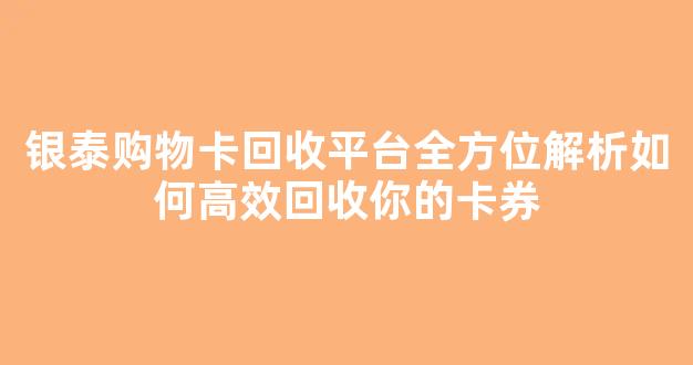 本文将为你详细介绍银泰购物卡的回收方式,以及如何通过正规平台高效回收这些卡券。通过这篇文章,你将了解到回收过程中的注意事项和推荐的平台,帮助你更好地管理手中的购物卡。