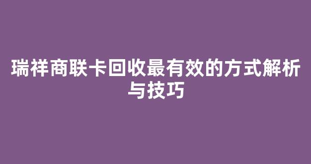 以上是瑞祥商联卡回收的有效方式和技巧,通过这些方法,用户不仅可以顺利完成卡片回收,还能确保自己的利益不受损害。