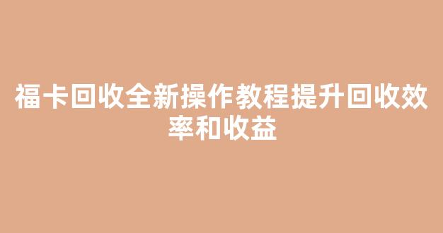 随着环保意识的提高,福卡回收成为越来越多人关注的焦点。很多用户希望能够通过高效的回收操作来提高回收效率和收益。本文将介绍如何通过简单、实用的操作来优化福卡回收过程,并提高整体收益。通过本文的指导,您将了解如何更好地利用福卡回收平台,让每一次回收都更加顺利。
