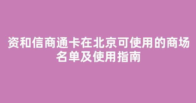 在北京,资和信商通卡作为一种方便快捷的支付工具,已经被广泛应用于多个商场。无论你是想购物、用餐还是娱乐,资和信商通卡都能为你提供极大的便利。本文将介绍在北京使用资和信商通卡的主要商场,并提供相关的使用指南,帮助你更好地利用这张卡片进行消费。