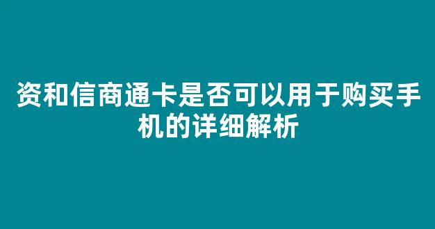 在现代消费中,信用卡已经成为了人们日常生活中不可或缺的一部分。而在众多信用卡中,资和信商通卡是一款受欢迎的卡片,许多人都在考虑是否可以用它来购买手机。本文将对资和信商通卡是否可以用于购买手机进行详细分析,帮助用户做出明智的决策。
