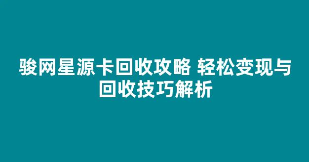 骏网星源卡回收攻略 轻松变现与回收技巧解析
