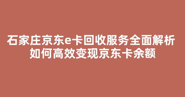 在今天的互联网时代,京东卡作为一种方便的电子支付工具,已经被广泛应用于各类商品购买。然而,有时候我们会遇到京东卡余额不知如何处理的情况。为了帮助大家更好地变现京东卡余额,本文将详细分析石家庄京东e卡回收服务,帮助大家高效地将京东卡余额转化为现金或其他更实用的形式。