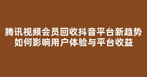 腾讯视频会员回收抖音平台新趋势如何影响用户体验与平台收益