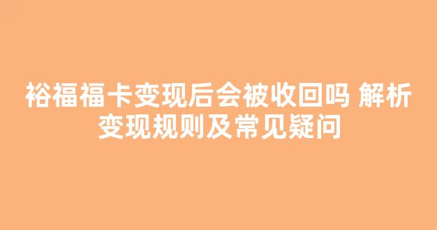 裕福福卡变现后会被收回吗 解析变现规则及常见疑问