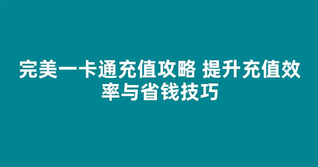 完美一卡通作为一种便捷的支付工具,广泛应用于各种在线充值场景中。为了更好地利用它的优势,我们可以通过一些技巧来提高充值效率并节省开支。本文将为大家提供一套完美一卡通充值的实用攻略,帮助你在充值过程中更加高效和省钱。