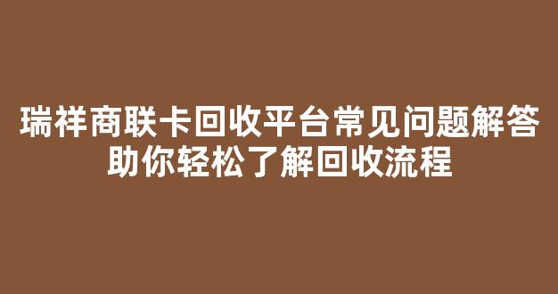 随着电子产品的不断更新换代,旧卡和过期卡的回收成为了越来越多用户关注的话题。瑞祥商联卡回收平台为广大用户提供了一个便捷、安全的回收通道,帮助大家快速处理不再使用的卡片。在这篇文章中,我们将详细介绍瑞祥商联卡回收平台的常见问题解答,帮助你更好地了解回收流程和如何顺利完成卡片回收。