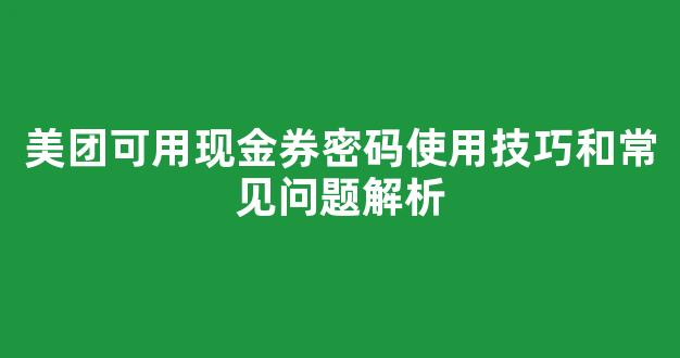 美团可用现金券密码使用技巧和常见问题解析