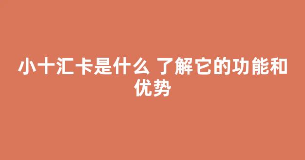 小十汇卡是一种新的支付工具,近年来逐渐被大众熟知。它结合了传统银行卡和现代科技支付的特点,可以让用户在消费时更加方便快捷。通过小十汇卡,用户可以享受更为高效和安全的支付体验,同时还能够享受一些独特的功能和优惠。本文将详细介绍小十汇卡的功能、优势以及如何使用它,让大家对这一支付工具有更加全面的了解。
