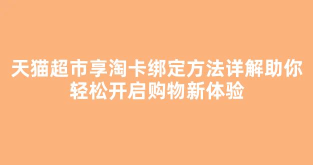 在天猫超市购物时,享淘卡是一个非常实用的功能,它能为消费者带来更多的优惠和便捷的购物体验。通过绑定享淘卡,用户可以轻松享受天猫超市的各种福利和折扣,提升购物的性价比。本文将详细介绍天猫超市享淘卡的绑定方法,帮助你快速完成绑定,并享受更优质的购物体验。