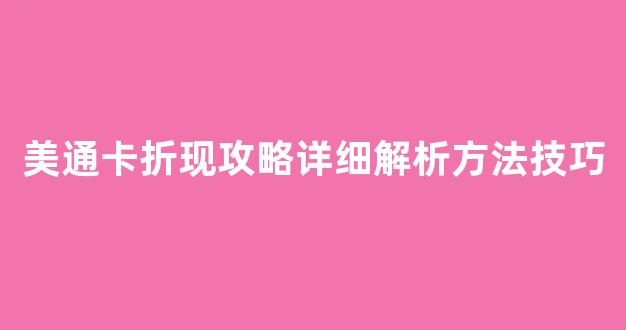 美通卡作为一种具有一定价值的虚拟卡片,能够提供优惠、折扣等多种用途。随着越来越多的人选择使用美通卡,了解如何将其折现成为了许多用户关心的话题。本文将详细解析美通卡折现的方法、技巧以及注意事项,帮助你更好地利用美通卡进行折现操作,获取更高的实惠。