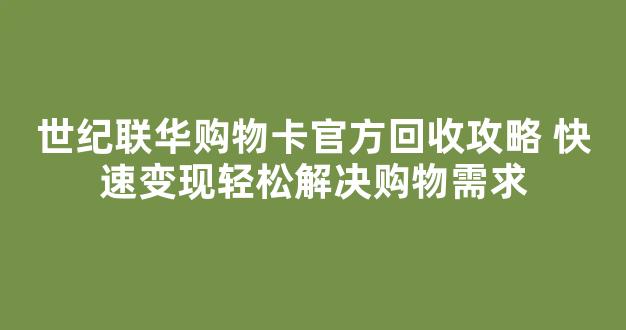 如果你手中有多余的世纪联华购物卡,想要尽快变现,轻松解决购物需求,官方回收攻略是最好的选择。通过合理的回收方式,不仅可以将卡中的余额快速转化为现金,还能避免浪费,轻松解决生活中各种消费问题。接下来,我们将为你详细介绍世纪联华购物卡的回收步骤和注意事项,帮助你更好地利用回收平台进行变现。