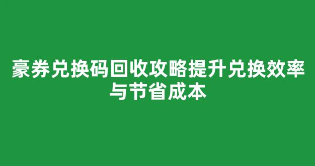 豪券兑换码回收攻略提升兑换效率与节省成本