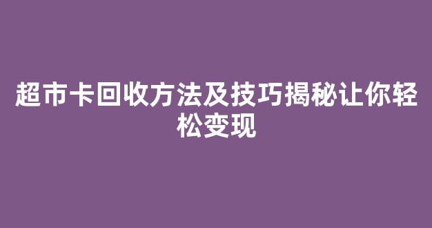 超市卡回收,顾名思义,就是将不再使用的超市卡进行兑换或转售。随着电子支付和线上购物的普及,很多人手中的超市卡逐渐闲置。为了避免浪费,将这些卡片回收变现是一种不错的选择。通过回收平台,用户可以将超市卡出售,换取现金或其他商品。