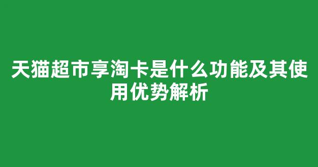 天猫超市享淘卡是一种通过购物和消费享受更多优惠的会员卡。它的功能不仅可以帮助用户在天猫超市购物时享受折扣和优惠,还有许多额外的福利。这种卡可以提升购物体验,使消费者在购物时能够节省更多钱,同时也能获得独特的会员权益。本文将详细介绍天猫超市享淘卡的功能和使用优势,帮助你更好地了解这种会员卡。