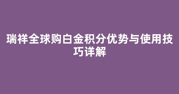 瑞祥全球购是一家提供全球商品购买的平台,吸引了不少消费者。而瑞祥全球购的白金积分制度,更是吸引了大量忠实用户。这项积分计划不仅能为用户提供很多实惠,还能在购物过程中享受更多的特权和福利。本文将详细解析瑞祥全球购白金积分的优势、使用技巧以及如何最大化积分的价值。
