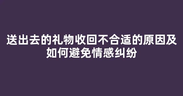 在生活中,送礼物是一种常见的表达心意的方式。然而,有时候我们可能会遇到礼物送出去后,因各种原因想要收回的情形。无论是因为礼物不合适,还是因为情感变化,收回礼物都可能带来尴尬和情感纠纷。因此,了解送出去的礼物收回不合适的原因,并学会如何避免这些情感纠纷,是每个人都需要掌握的技巧。