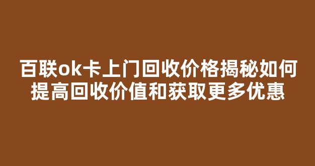 在现代社会,很多人都选择将不再使用的物品进行回收,尤其是像百联OK卡这样的储值卡。这类卡片不仅能为用户提供便利,也成为了日常生活中的一种支付工具。但很多人并不了解,百联OK卡上门回收的价格如何,如何提高回收的价值,又能如何获取更多的优惠。本文将从多个方面详细介绍,帮助你了解回收百联OK卡的具体步骤,以及如何通过回收平台获取更好的价格和服务。