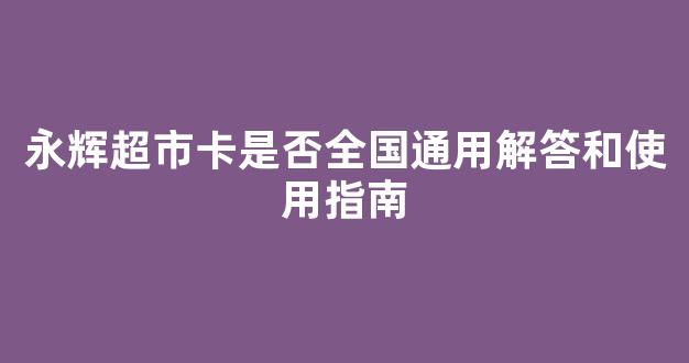 永辉超市卡是一种在永辉超市购物时使用的会员卡,它不仅能为顾客提供积分和优惠,还可以享受多种服务和便利。对于不少消费者来说,是否能在全国范围内使用这张卡是一个关注点。本文将详细解答永辉超市卡是否全国通用的问题,并为大家提供一份使用指南,帮助大家更好地利用这张卡的优势。